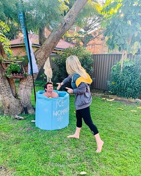 of the group had gathered around the ice bath and