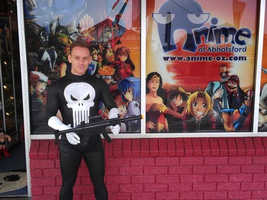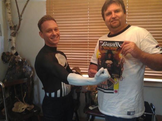 Punisher" (fan) and Greg Tingle (Human Statue