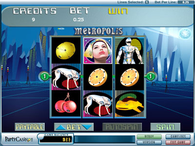 Metropolis Slots is a three-reel, single-payline